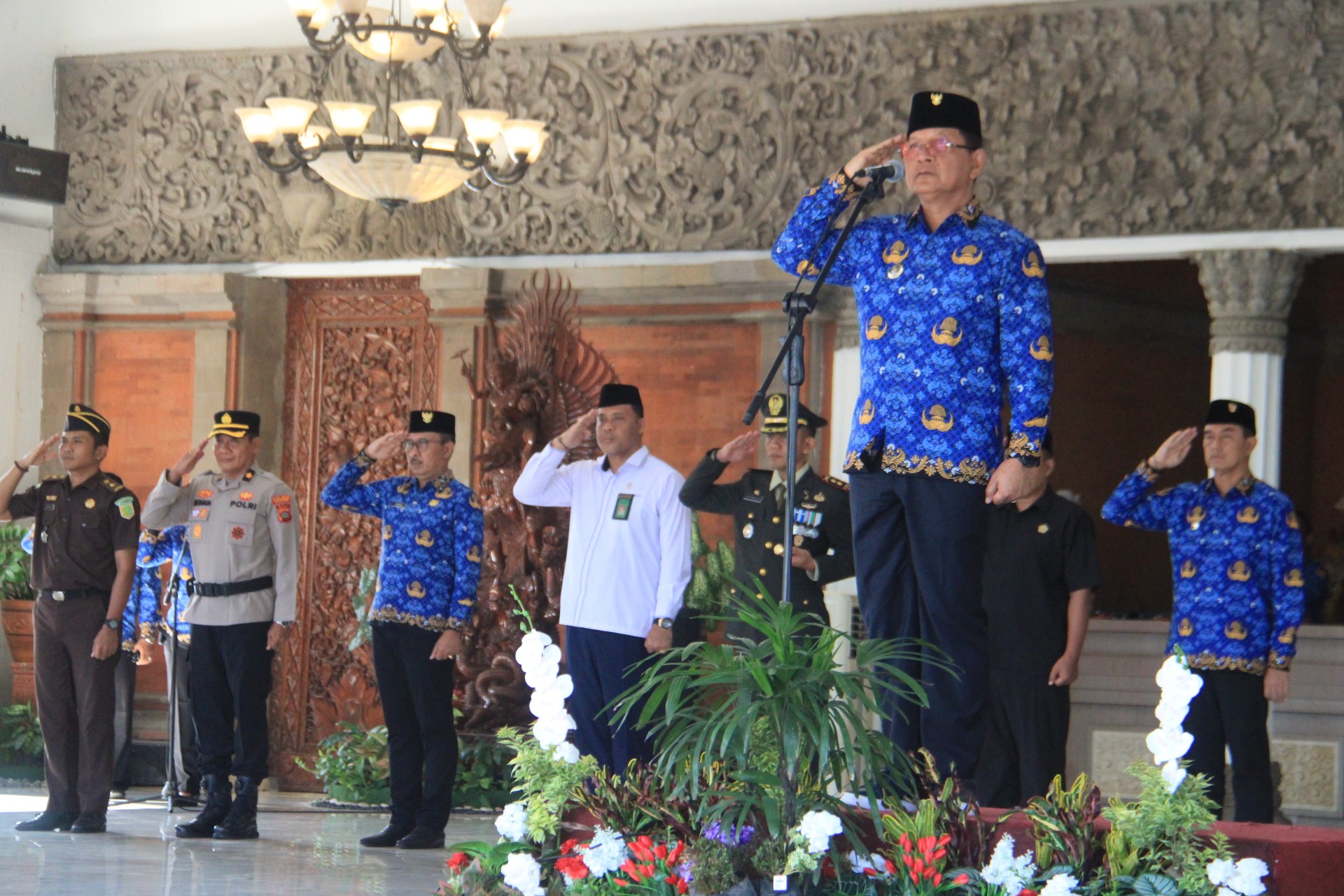 Pemerintah Kabupaten Buleleng melaksanakan rangkaian kegiatan pada Senin (1/12/2025) diantaranya Upacara dalam rangka memperingati Hari Ulang Tahun Korps Pegawai Republik Indonesia (KORPRI) ke-54, Ziarah makam ke Taman Makam Pahlawan Curastana, dan Sosialisasi anti korupsi. Seluruh kegiatan berjalan khidmat dan tertib, melibatkan unsur pimpinan perangkat daerah, aparatur sipil negara (ASN), serta perwakilan desa dan kelurahan se-Kabupaten Buleleng.