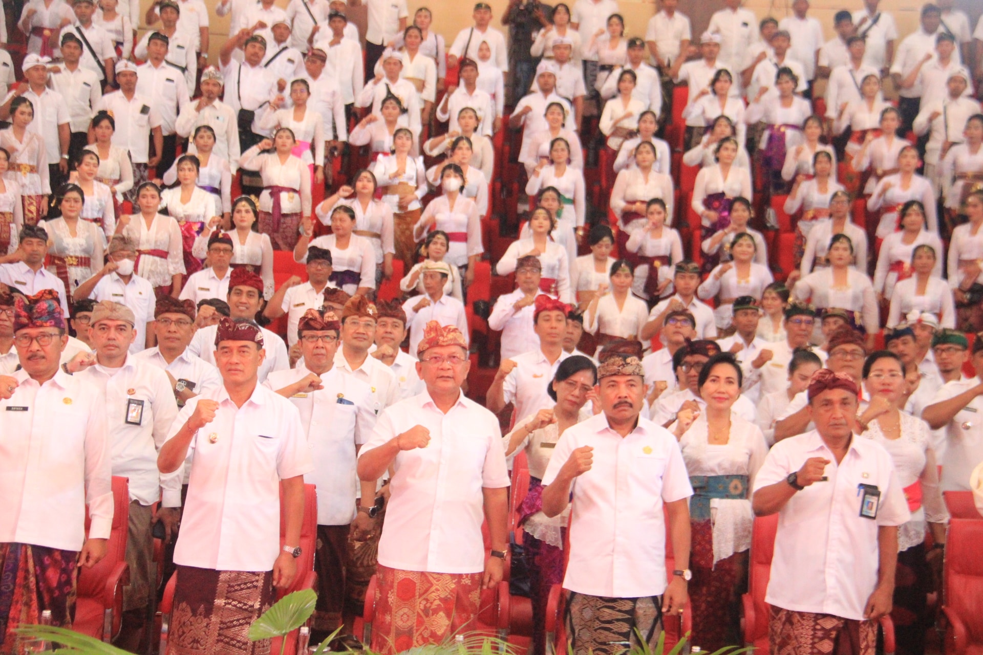 Suasana haru menyelimuti acara ketika para pegawai mengucapkan sumpah dan janji yang dipimpin langsung oleh Bupati Buleleng. Momen tersebut disaksikan oleh seluruh undangan yang hadir, menjadi simbol komitmen baru aparatur sipil dalam menjalankan tugas pemerintahan dan pelayanan masyarakat.