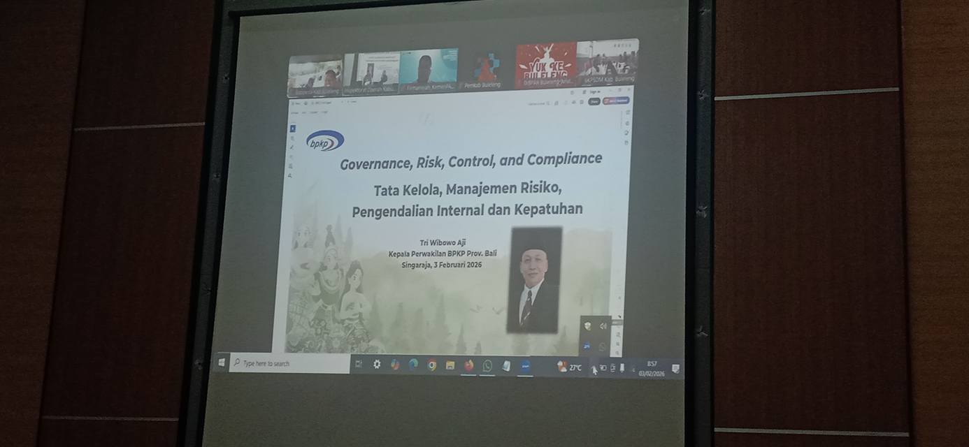 Sekretaris Badan Perencanaan Pembangunan Daerah Kabupaten Buleleng, Komang Widarma bersama Kepala Sub Bagian Umum serta staf mengikuti secara online Rapat Koordinasi (Rakor) Pimpinan Perangkat Daerah Kabupaten Buleleng yang diselenggarakan oleh Inspektorat Daerah Kabupaten Buleleng. Kegiatan yang berlangsung selama tiga hari, 3–5 Februari 2026 ini berpusat secara luring di Handara Golf and Resort, Desa Pancasari, Kecamatan Sukasada, sementara sejumlah pejabat termasuk Sekretaris dan perencana perangkat daerah mengikuti melalui Zoom Meeting.