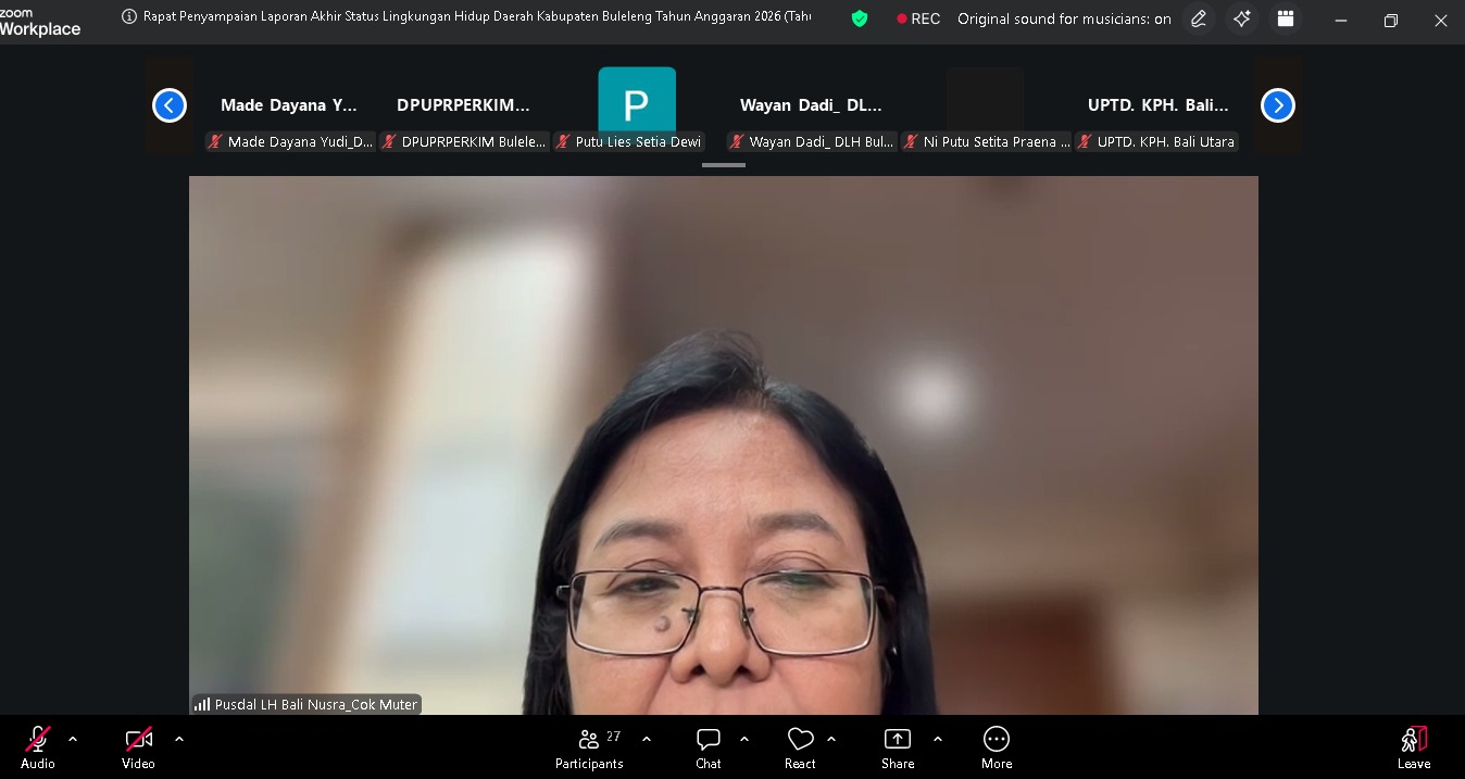 Rapat Penyampaian Laporan Akhir Status Lingkungan Hidup Daerah (SLHD) Tahun Anggaran 2026 yang digelar secara daring melalui Zoom Meeting berlangsung dengan sejumlah catatan penting. Kegiatan ini dibuka oleh Sekretaris Lingkungan Hidup DLH dan dihadiri oleh perwakilan Pusdal LH Bali Nusra, tim ahli dari Undiksha, serta anggota tim dari masing-masing SKPD.