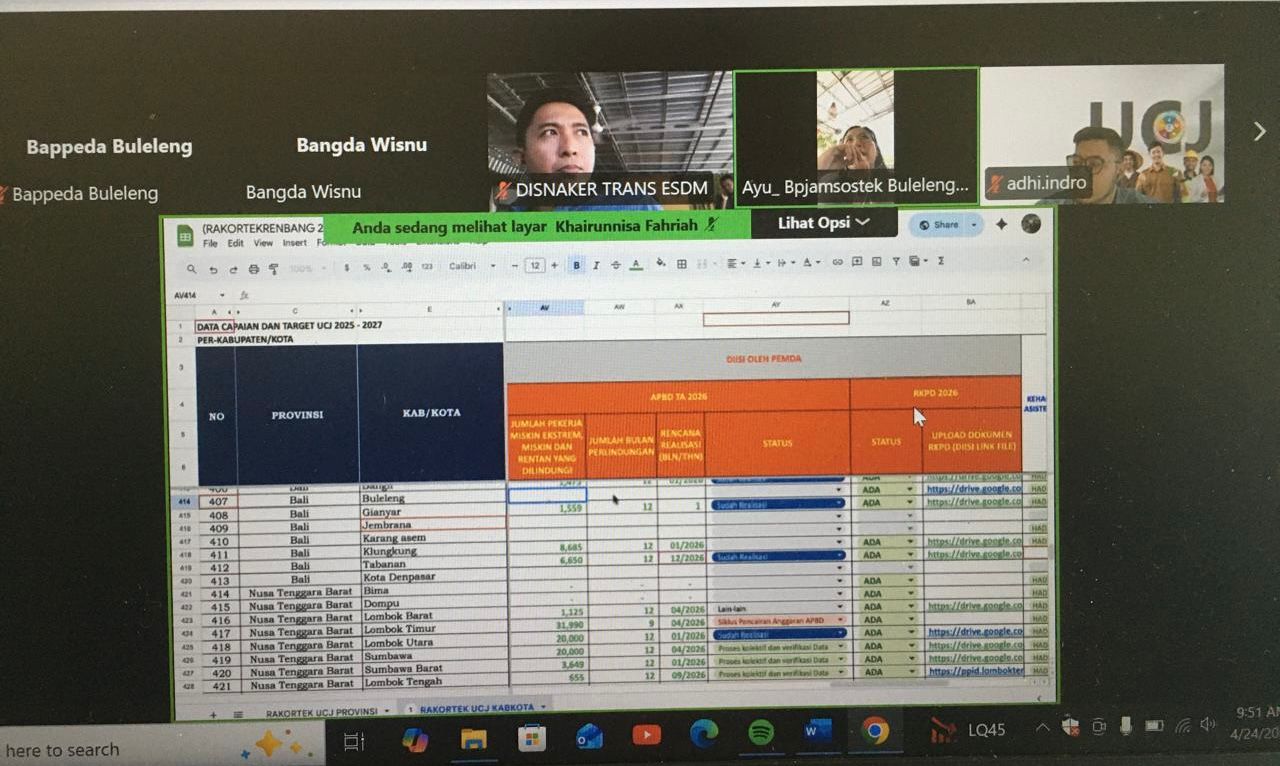 Upaya percepatan pencapaian Universal Coverage Jaminan Sosial Ketenagakerjaan (UCJ) terus digencarkan melalui kegiatan asistensi dan monitoring evaluasi yang dilaksanakan secara virtual pada 24 April 2026. Kegiatan ini menghadirkan berbagai pemangku kepentingan, mulai dari Direktorat Jenderal Bina Pembangunan Daerah, Sekretaris Daerah provinsi dan kabupaten/kota, inspektorat, Bappeda, Dinas Tenaga Kerja, hingga BPJS Ketenagakerjaan.